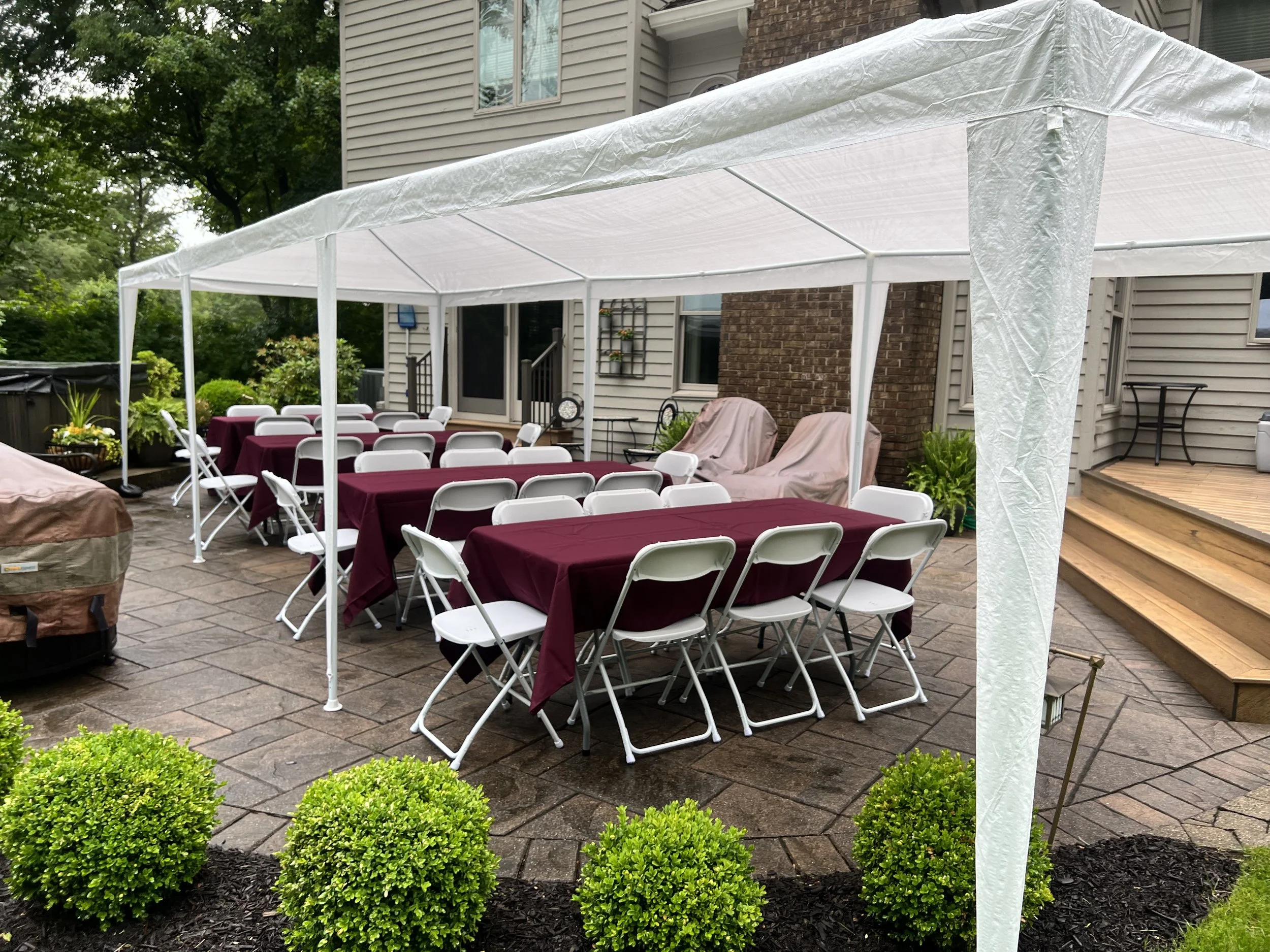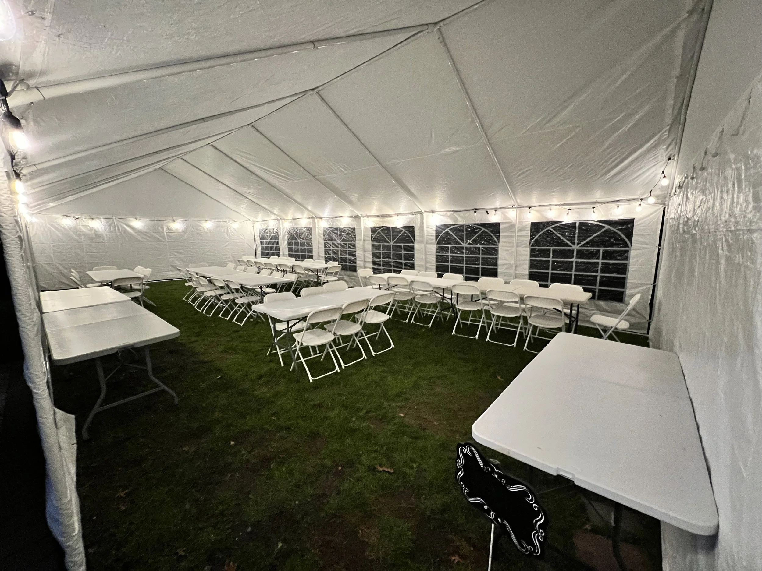 Tents come with or without panels to enclose sections. Pricing included installation but not delivery.